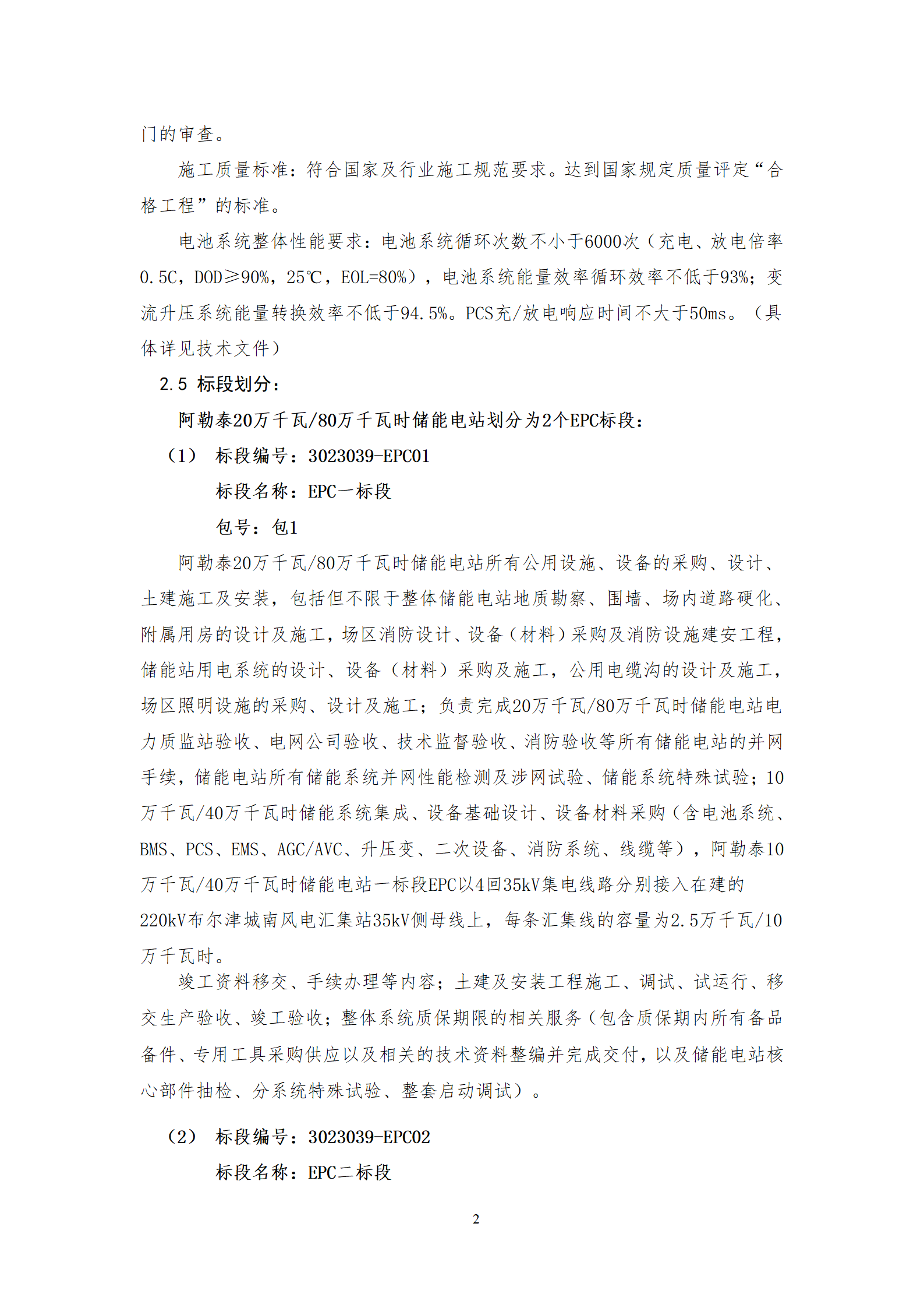 新疆阿勒泰200MW/800MWh储能电站EPC总承包招标