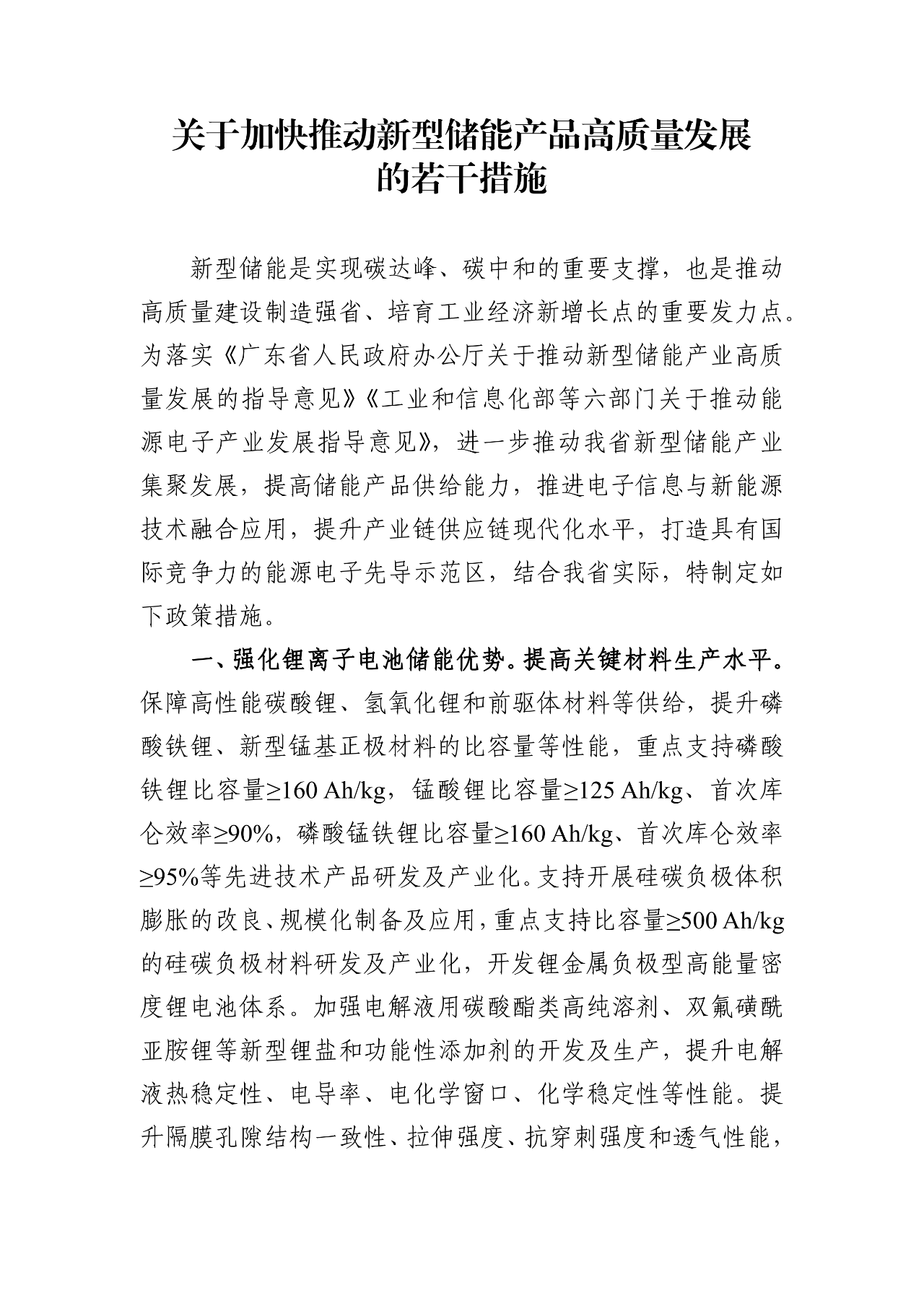155Wh/kg锂电池、160Wh/kg钠电池!广东印发推动新型储能产品发展措施