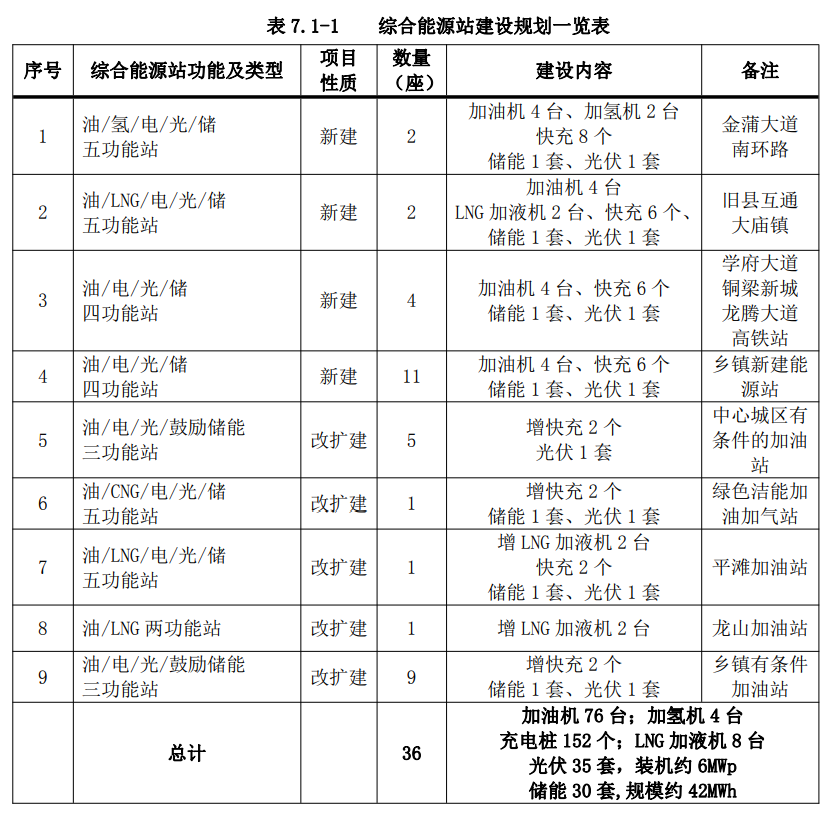 新建“油、LNG、电、光、储五功能综合能源站”2座。