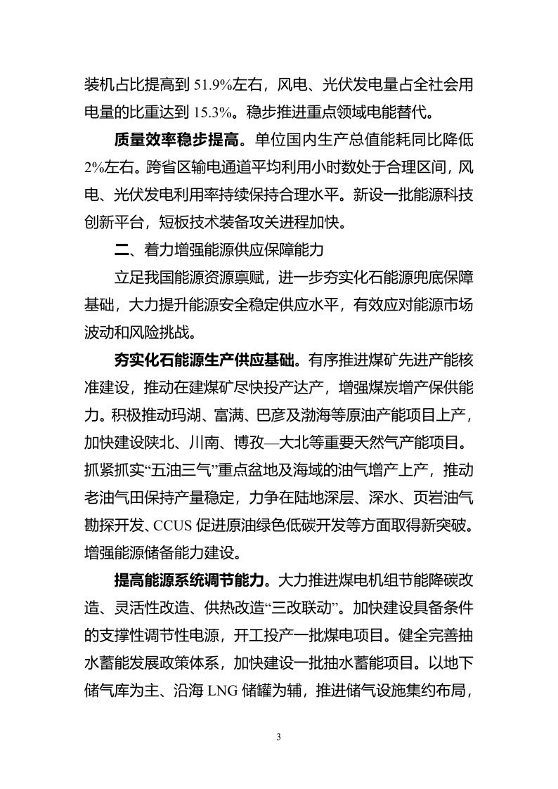 供应保障能力持续增强。全国能源生产总量达到47.5亿吨标准煤左右,能源自给率稳中有升。原油稳产增产,天然气较快上产,煤炭产能维持合理水平,电力充足供应,发电装机达到27.9亿千瓦左右,发电量达到9.36万亿千瓦时左右,“西电东送”输电能力达到3.1亿千瓦左右。