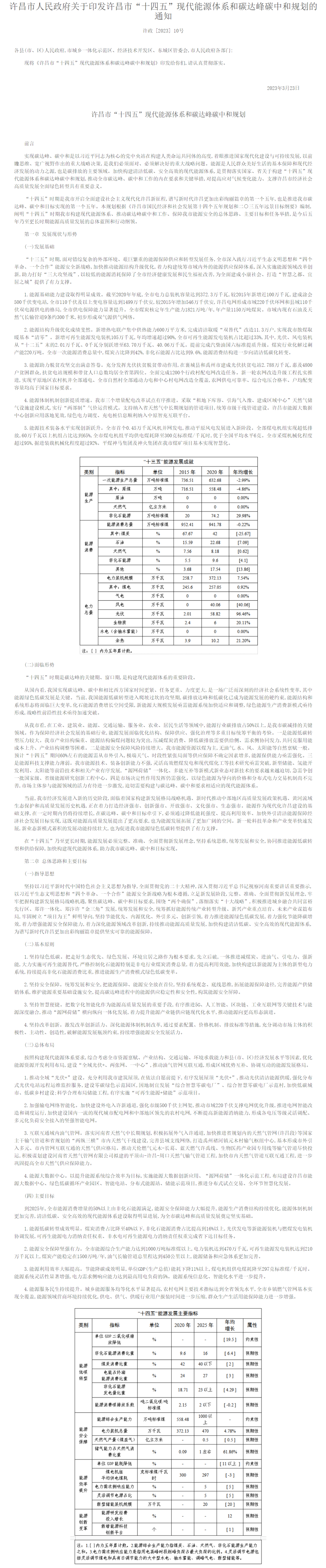4月7日,许昌市人民政府印发《许昌市“十四五”现代能源体系和碳达峰碳中和规划的通知》(以下简称“通知”)。