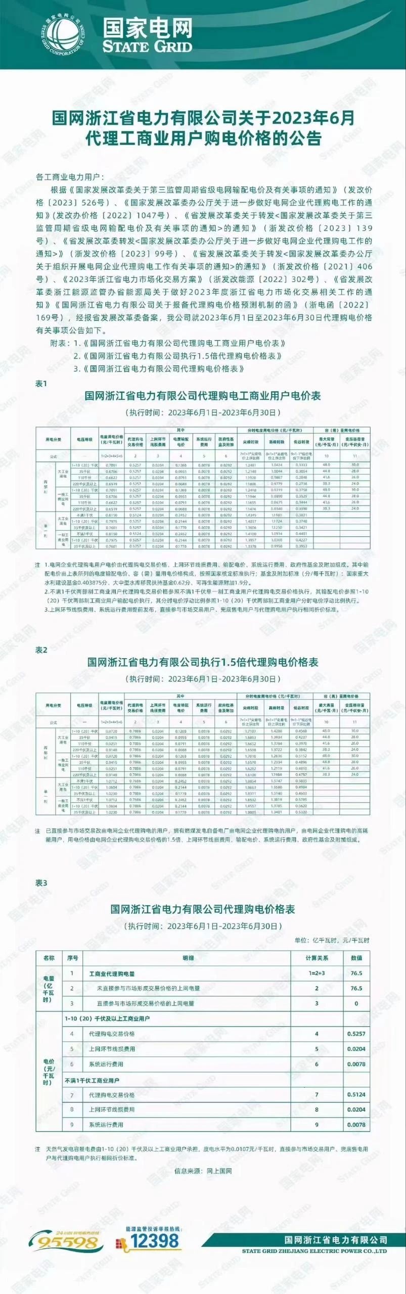 日前,国网浙江发布2023年6月代理工商业用户购电价格信息。根据信息,2023年6月尖峰电价高达1.7107元/度、高峰电价:1.4288元/度、低谷电价:0.4568元/度。