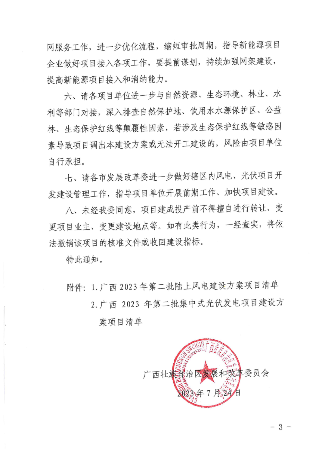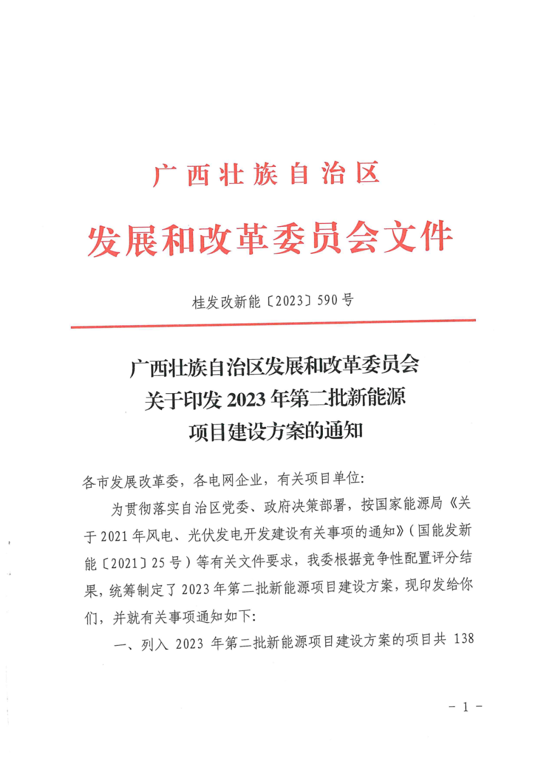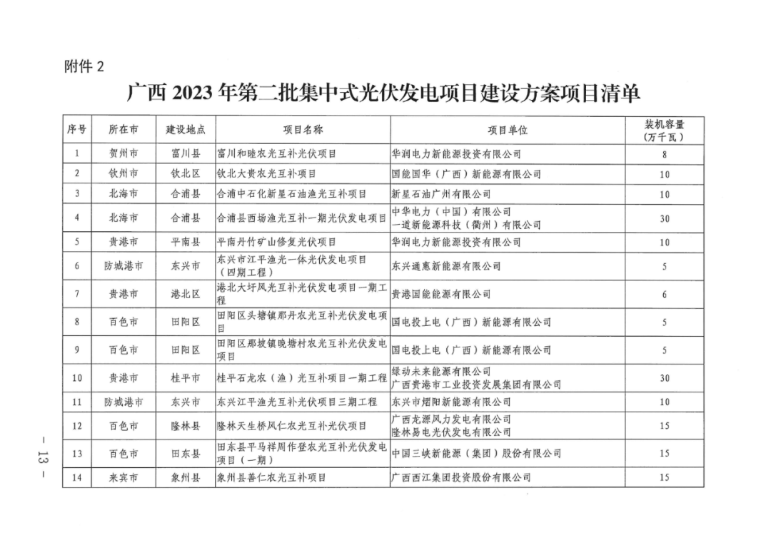 7月24日,广西壮族自治区发展和改革委员会印发2023年第二批新能源项目建设方案的通知。