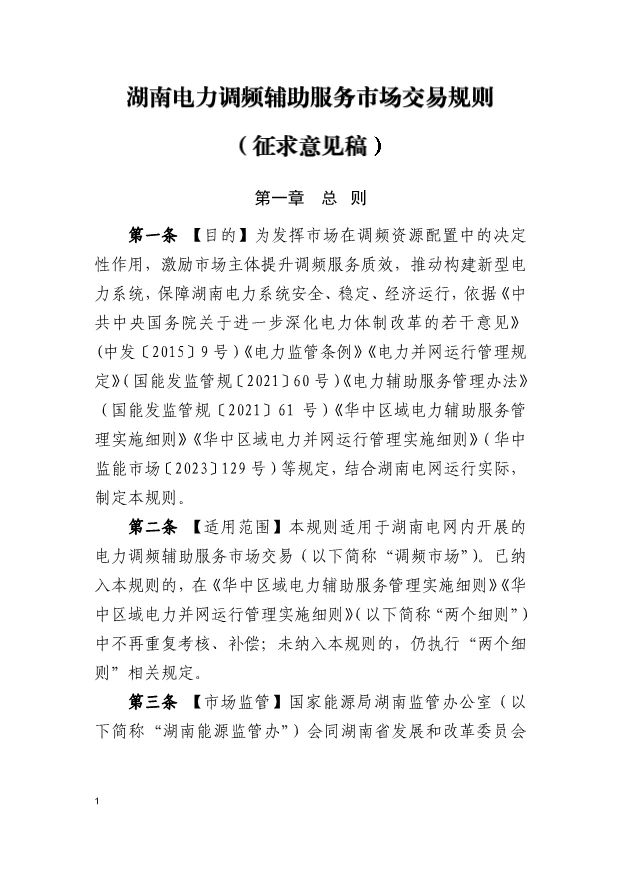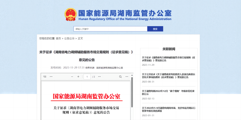 湖南调频市场规则:独立储能20MW/1h,市场用户承担50%费用!