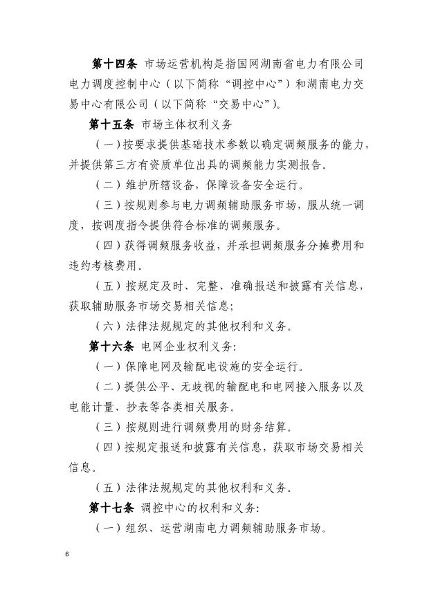 市场主体分为调频辅助服务卖方与调频辅助服务买方。卖方包括火电(含火储、燃气机组)、水电(含抽水蓄能机组)、储能电站以及聚合资源等。买方包括湖南电网范围内 电力调度机构管辖且装机容量大于10兆瓦及以上的各类电 源(含自备电厂)及市场化电力用户。