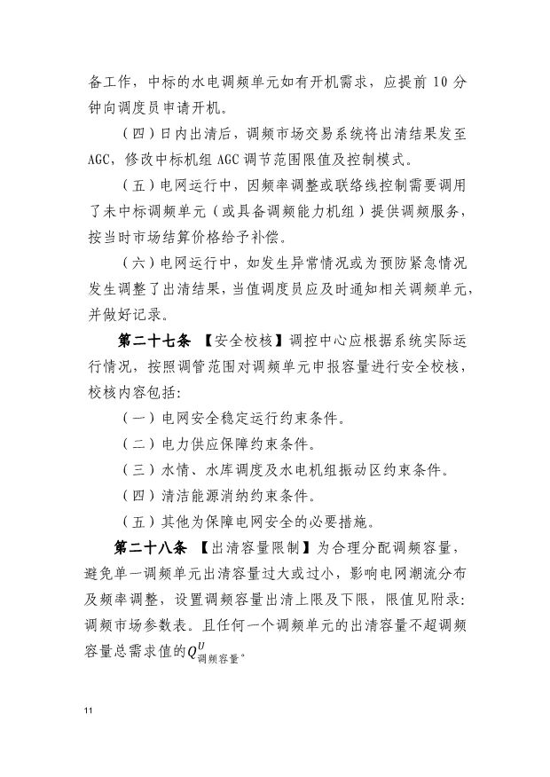 11月29日,湖南能监办印发《湖南省电力调频辅助服务市场交易规则(征求意见稿)》。其中明确调频里程价格申报上限10元/兆瓦,调频里程结算价格上限15元/兆瓦。