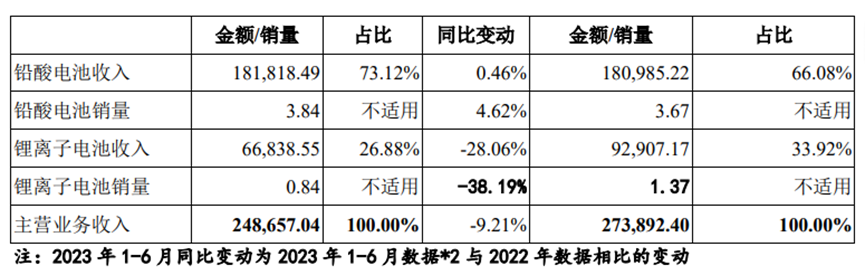 上半年锂电池销量1.01GWh,同比增长22.73%。